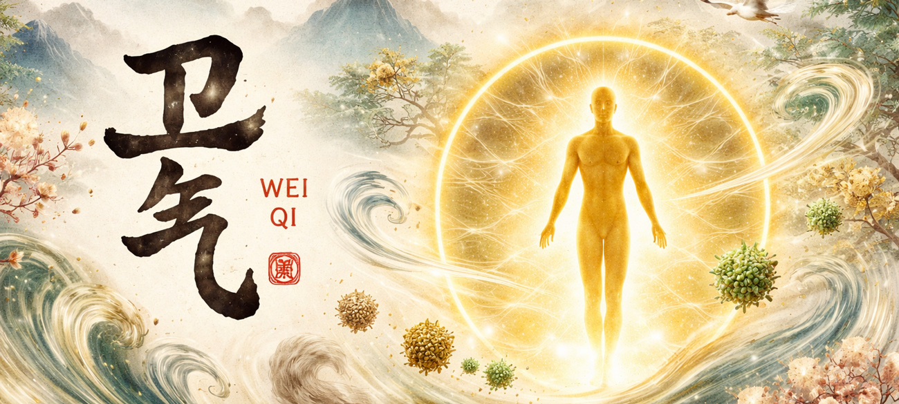 Le Wei Qi (卫气), souvent traduit par « énergie défensive », est un concept fondamental de la médecine traditionnelle chinoise (MTC). Il s'agit d'une forme particulière de Qi, l'énergie vitale qui circule dans le corps, dont la fonction principale est de protéger l'organisme contre les agressions extérieures. Selon les textes classiques, notamment le Huangdi Neijing (Canon interne de l'Empereur Jaune), le Wei Qi circule à la surface du corps, dans la peau et les muscles, et régule également l'ouverture et la fermeture des pores, contribuant ainsi à la thermorégulation et à la transpiration. Son origine est liée à la transformation des aliments et de l'air par la rate et les poumons : la rate extrait l'essence des aliments, tandis que les poumons diffusent cette énergie vers la surface du corps. Dans la culture chinoise, le Wei Qi est souvent comparé à une armée invisible qui patrouille en permanence pour défendre le territoire corporel. Un Wei Qi fort est synonyme de résistance, d'adaptation aux changements climatiques et de vitalité, tandis qu'un Wei Qi affaibli expose à des déséquilibres et à une sensibilité accrue aux agressions extérieures.
